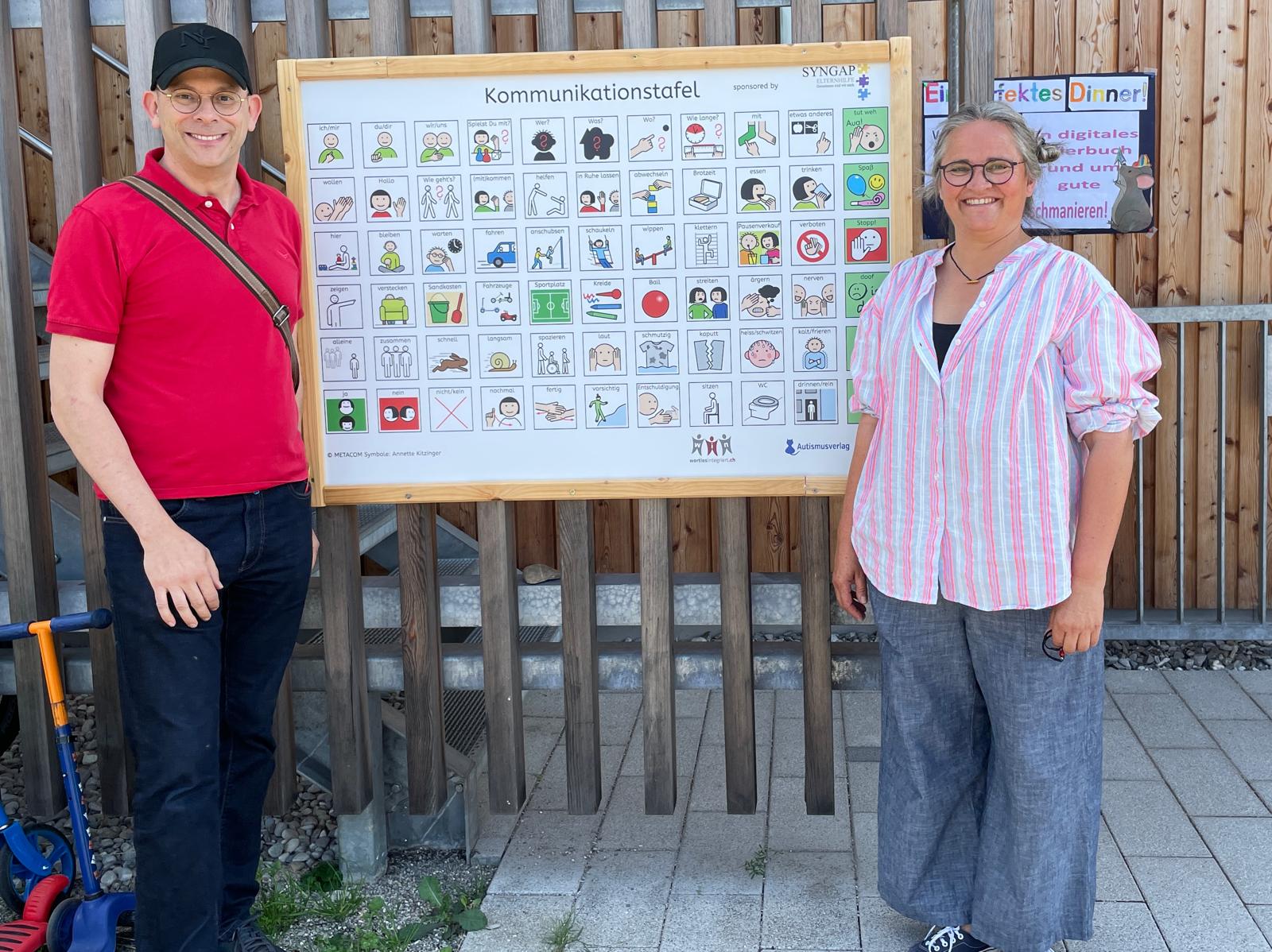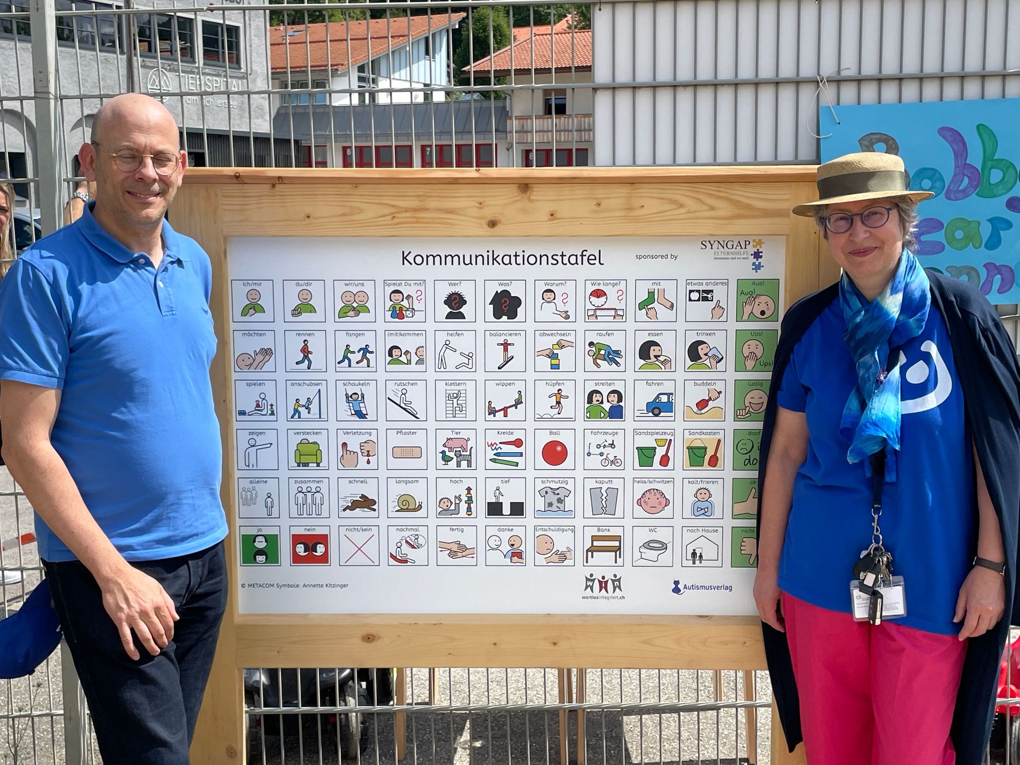 Die Spielplatztafel des Autismusverlags mit 66 METACOM Symbolen erleichtert die Kommunikation auf dem Spielplatz bzw. Schulhof sowohl für nichtsprechende Kinder wie auch für Menschen mit wenig Deutschkenntnissen. Gemeinsam über die Tafel kommt man ins Gespräch übers Schaukeln, kann Konflikte beilegen oder ein Fangspiel initiieren. Die Spielplatztafel ist in Zusammenarbeit mit win – wortlos integriert entstanden.